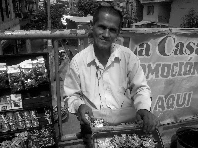 Después de este acercamiento, pasar por su puesto de ventas de dulces era una estación obligada. Ya no por cordialidad sino por placer. Era un gusto hablar con él. Alfredo Villalba es todo un ilustre caballero que comenzó a vender minutos y cajas de chicles; y al cabo de un mes ya tenía un cajón lleno de dulces. Cada semana se le veía más apropiado de su lugar de trabajo.